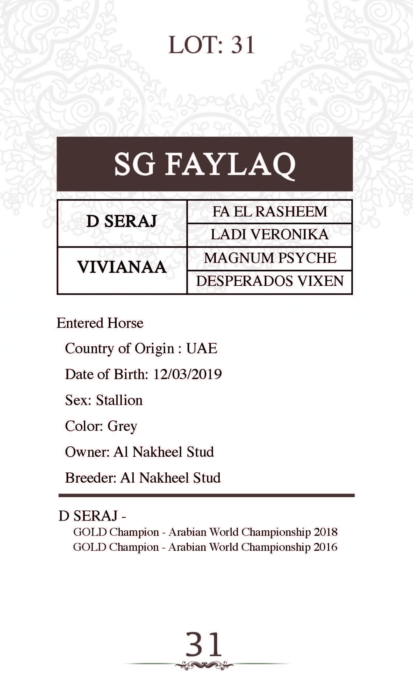 Sire: FA EL RASHEEM
