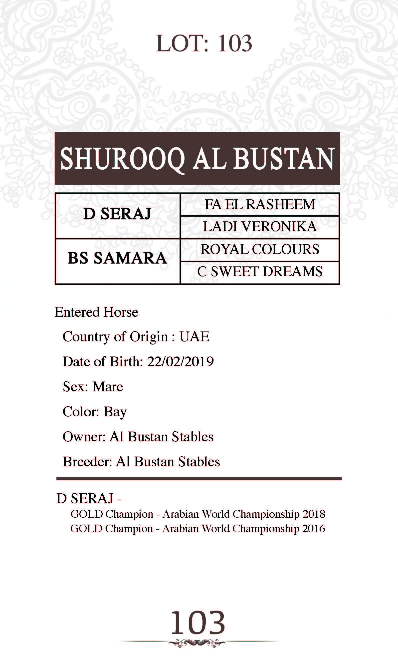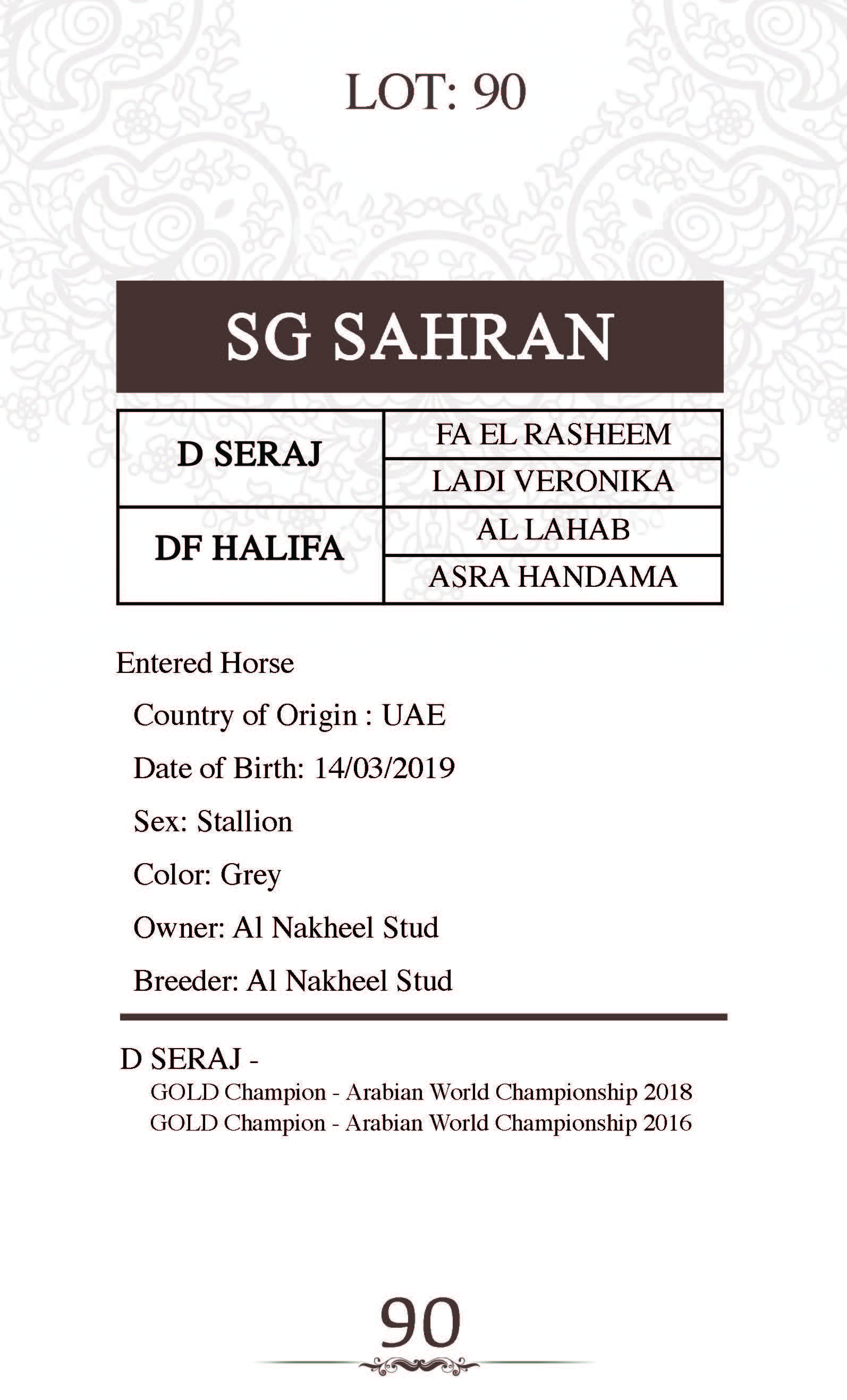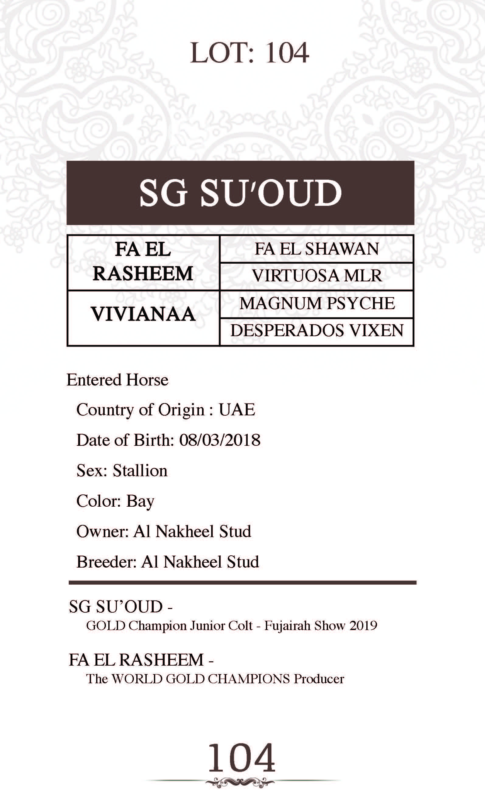 Sire: FA EL RASHEEM
