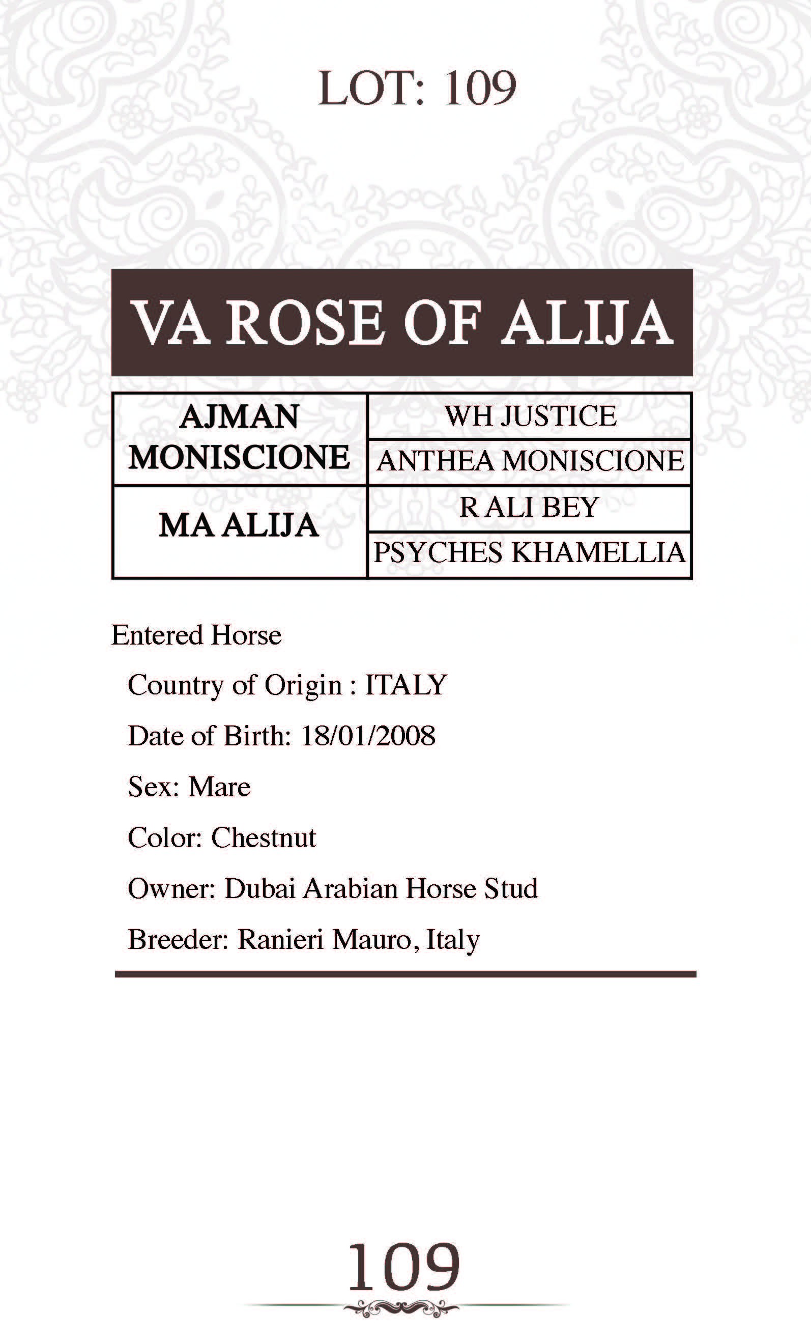 Sire: AJMAN MONISCIONE
