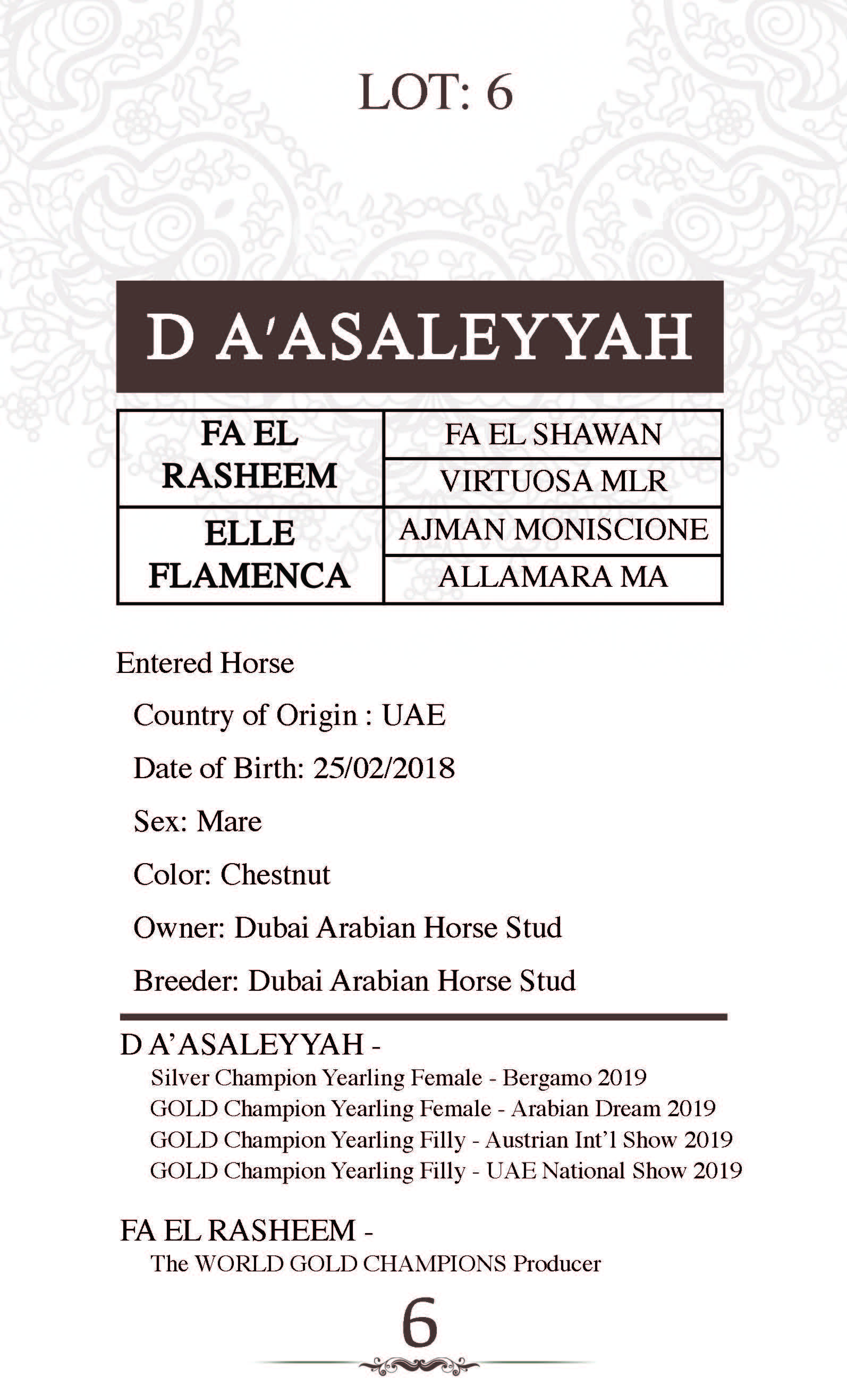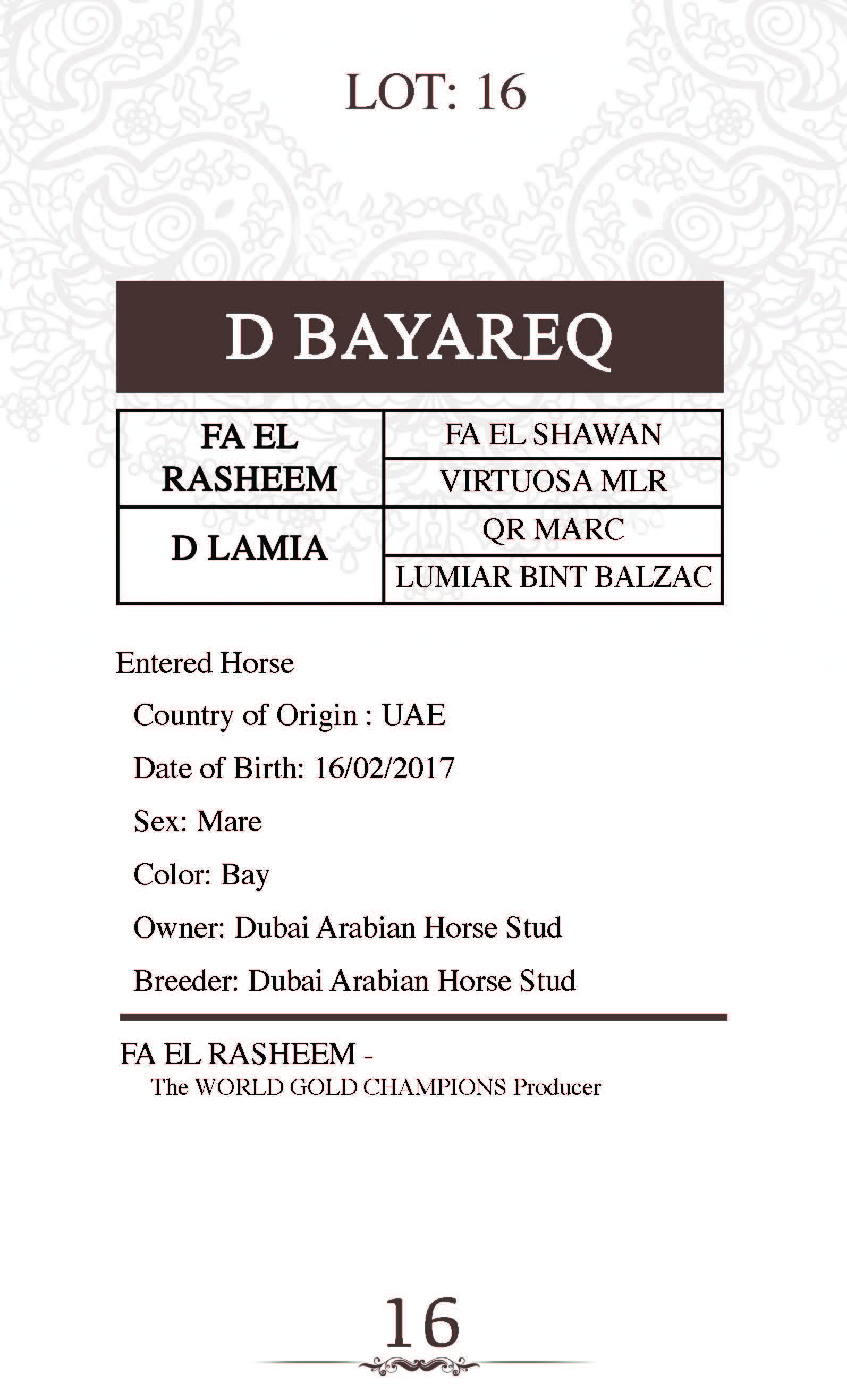 Sire: FA EL RASHEEM
