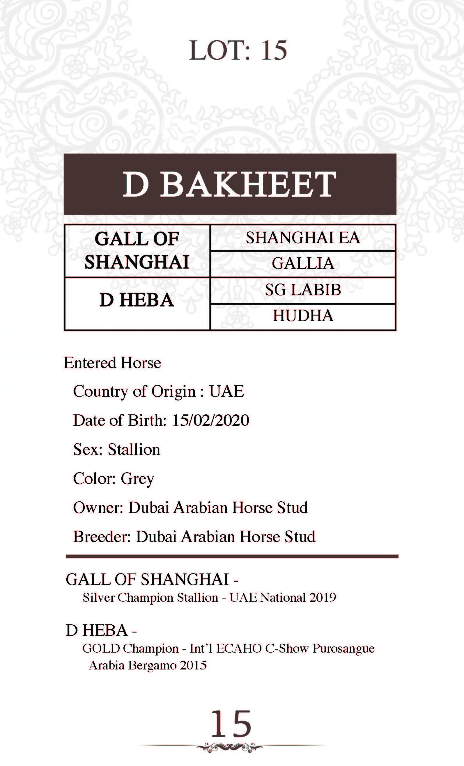 Sire: GALL OF SHANGHAI