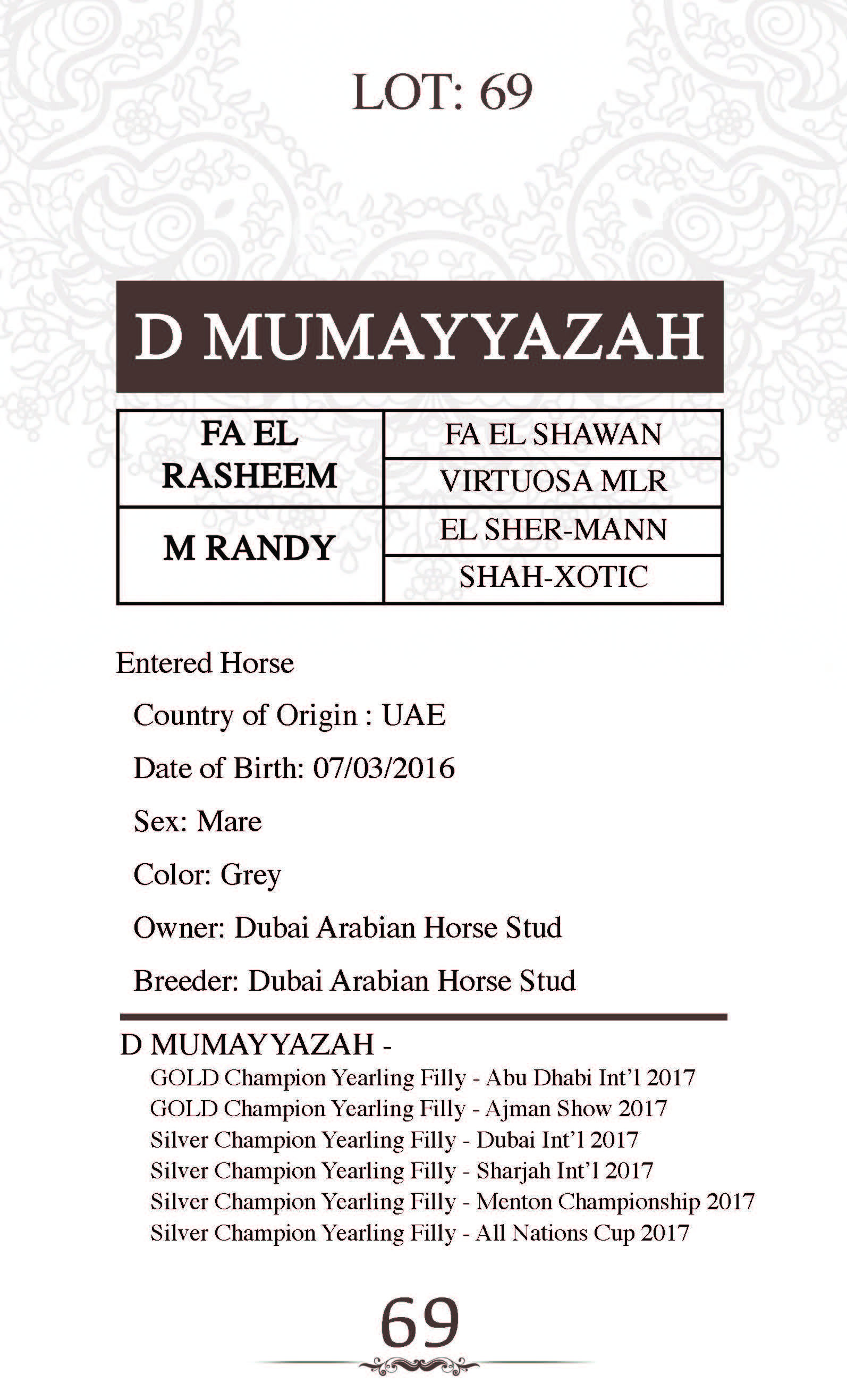 Sire: FA EL RASHEEM