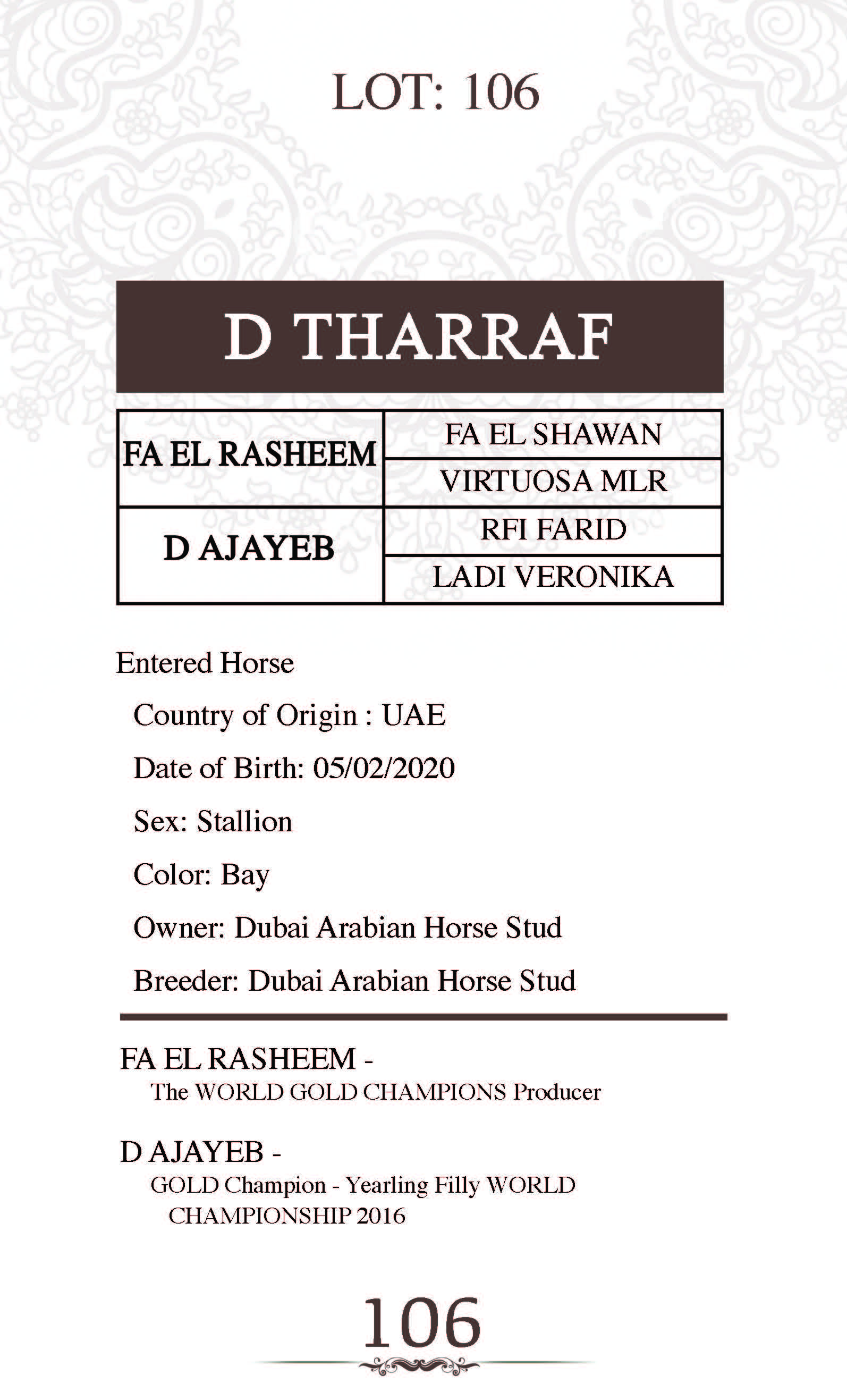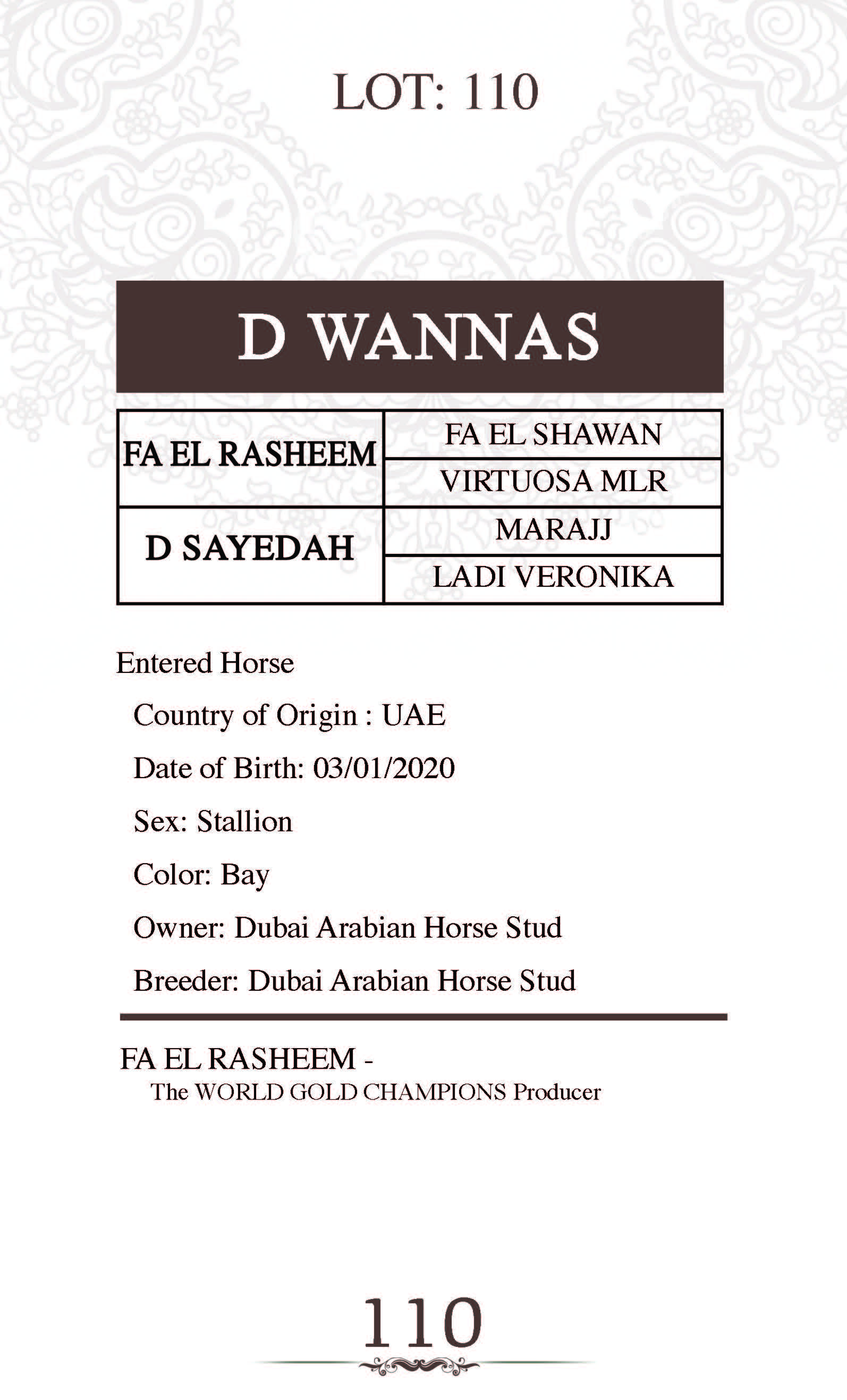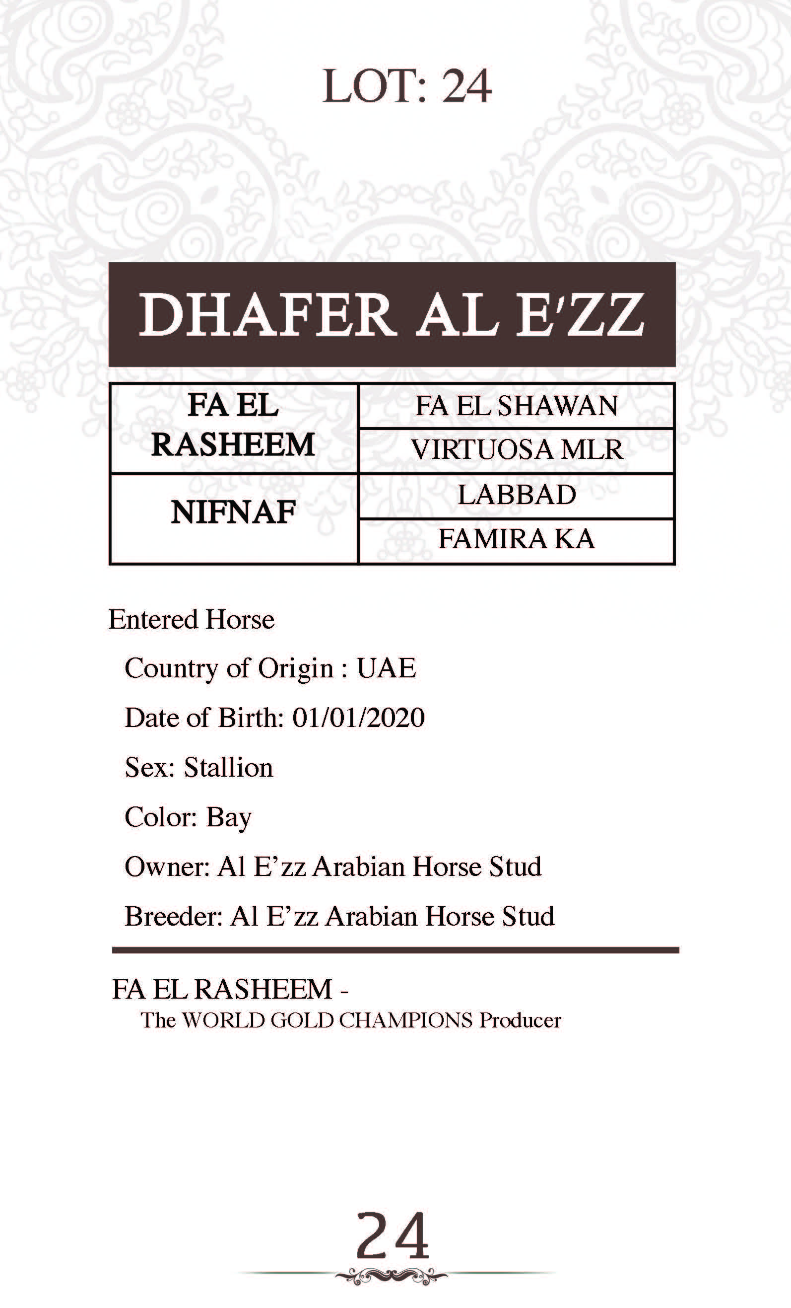 Sire: FA EL RASHEEM