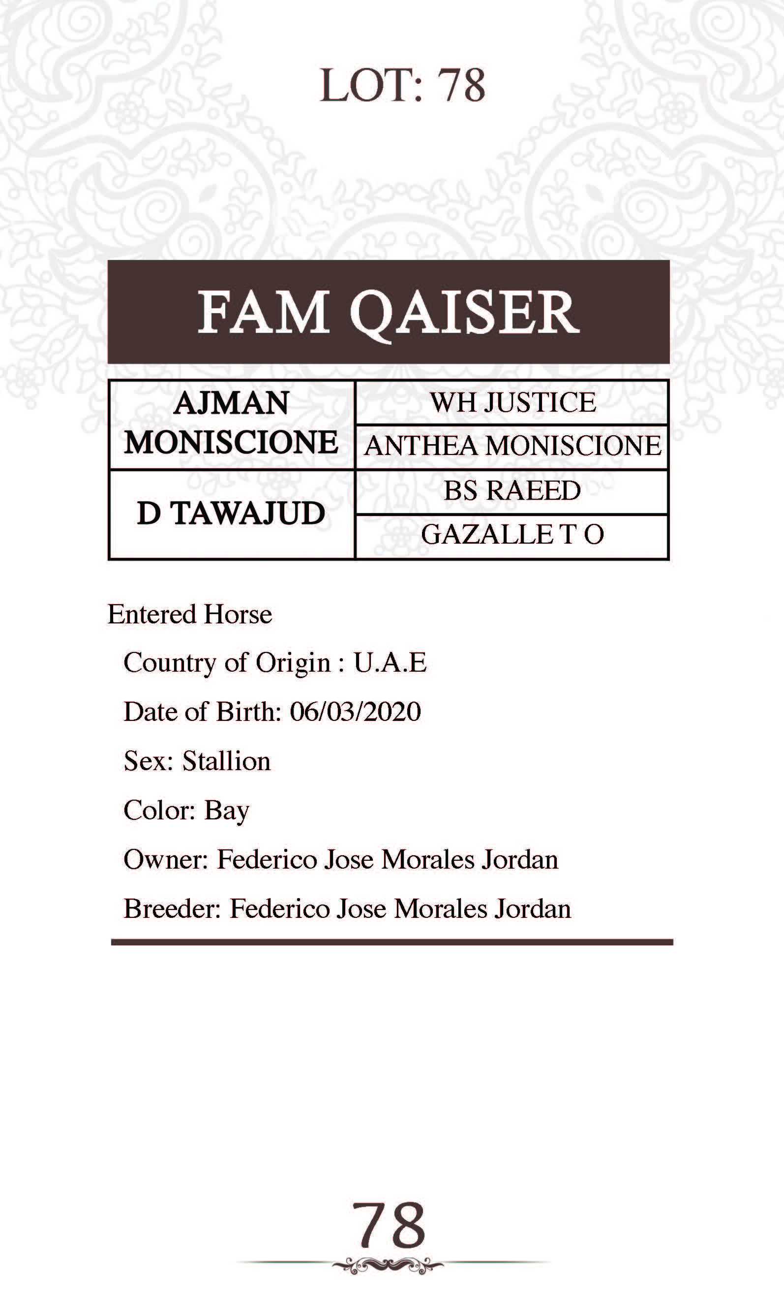 Sire: AJMAN MONISCIONE