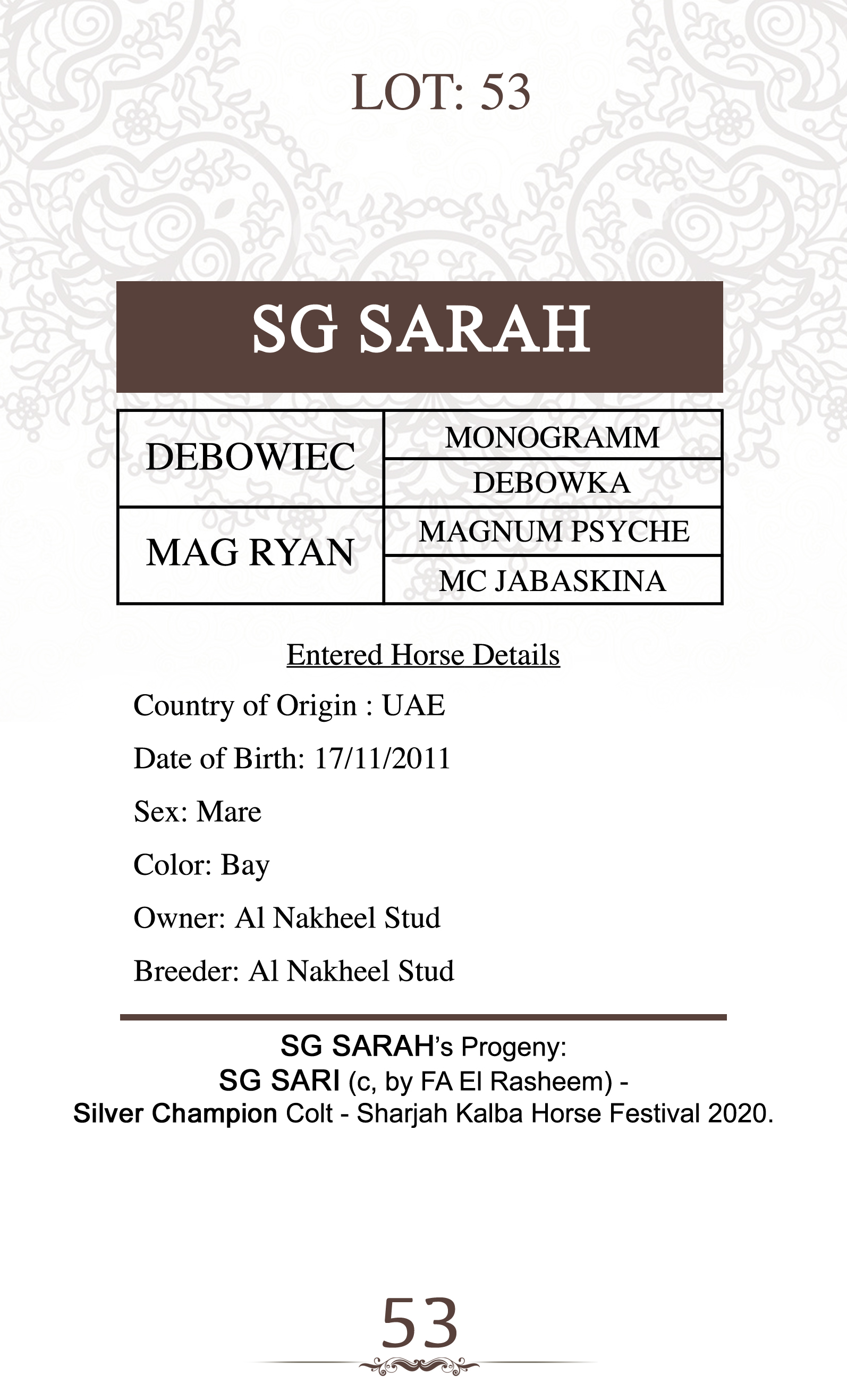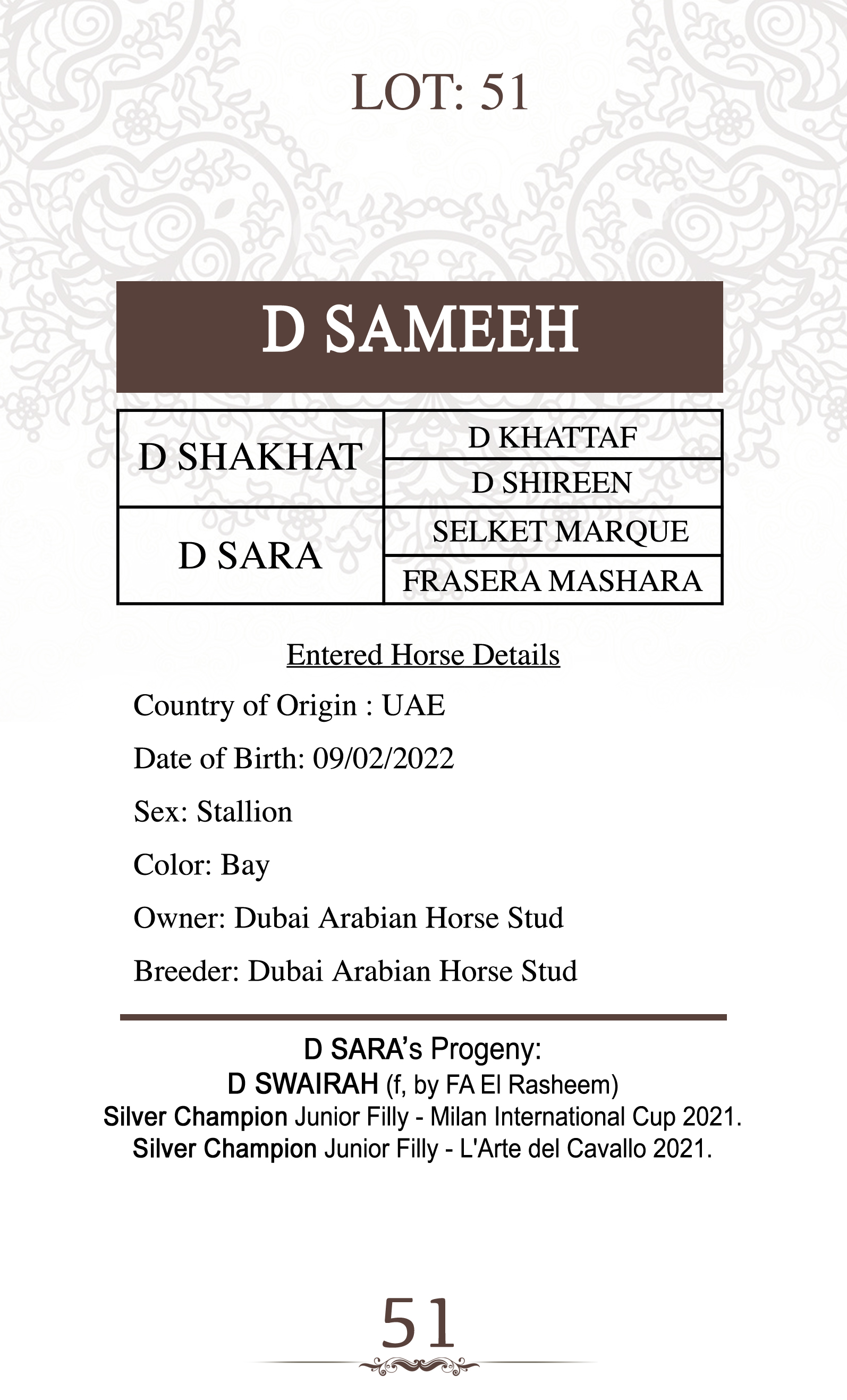 Sire: D SHAKHAT